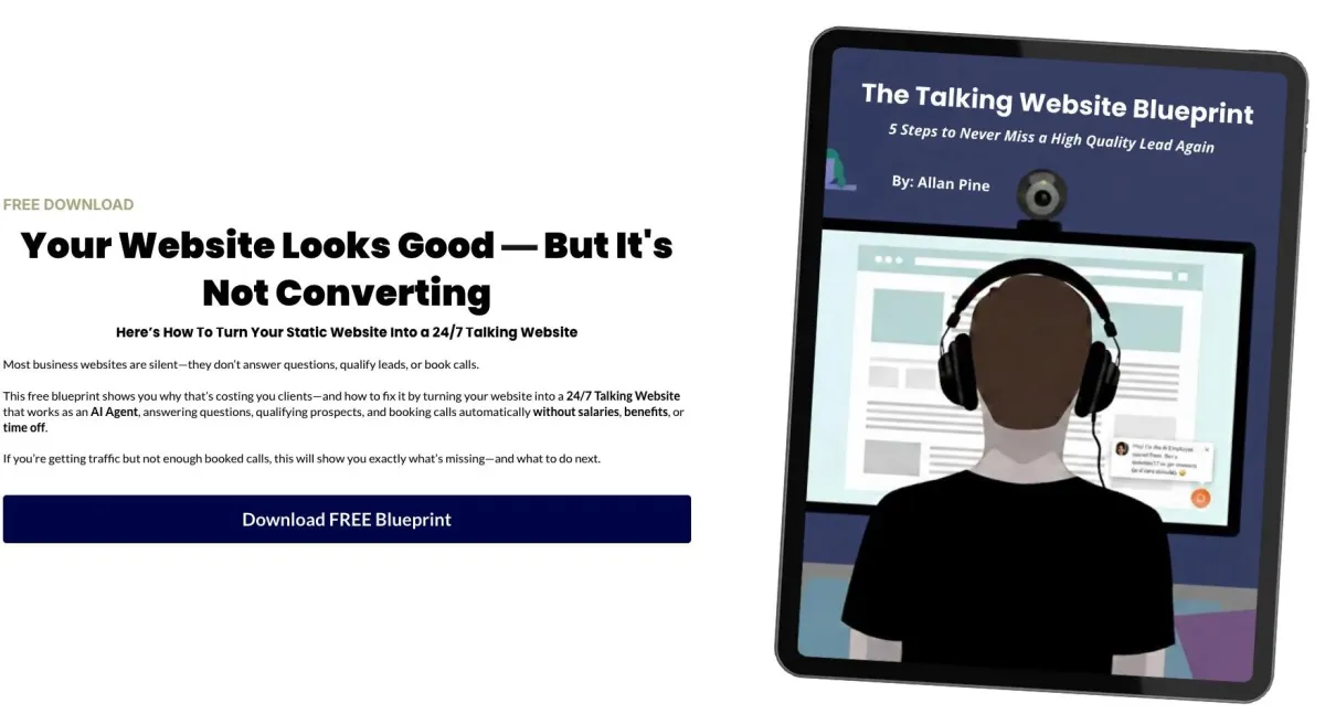 sales funnel using the ebook blueprint as a FREE lead magnet. Demonstrated lead capture, automated follow-up and engagement through voice and