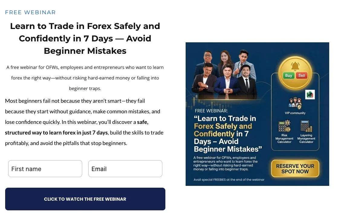 Designed a complete webinar funnel for Forex trading, including landing page, registration