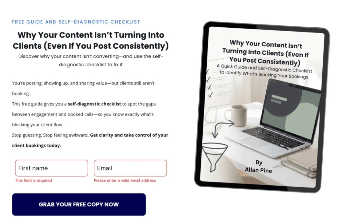 offering a FREE ebook guide on "Why Your Content Isn’t Converting to Clients". Captured leads,